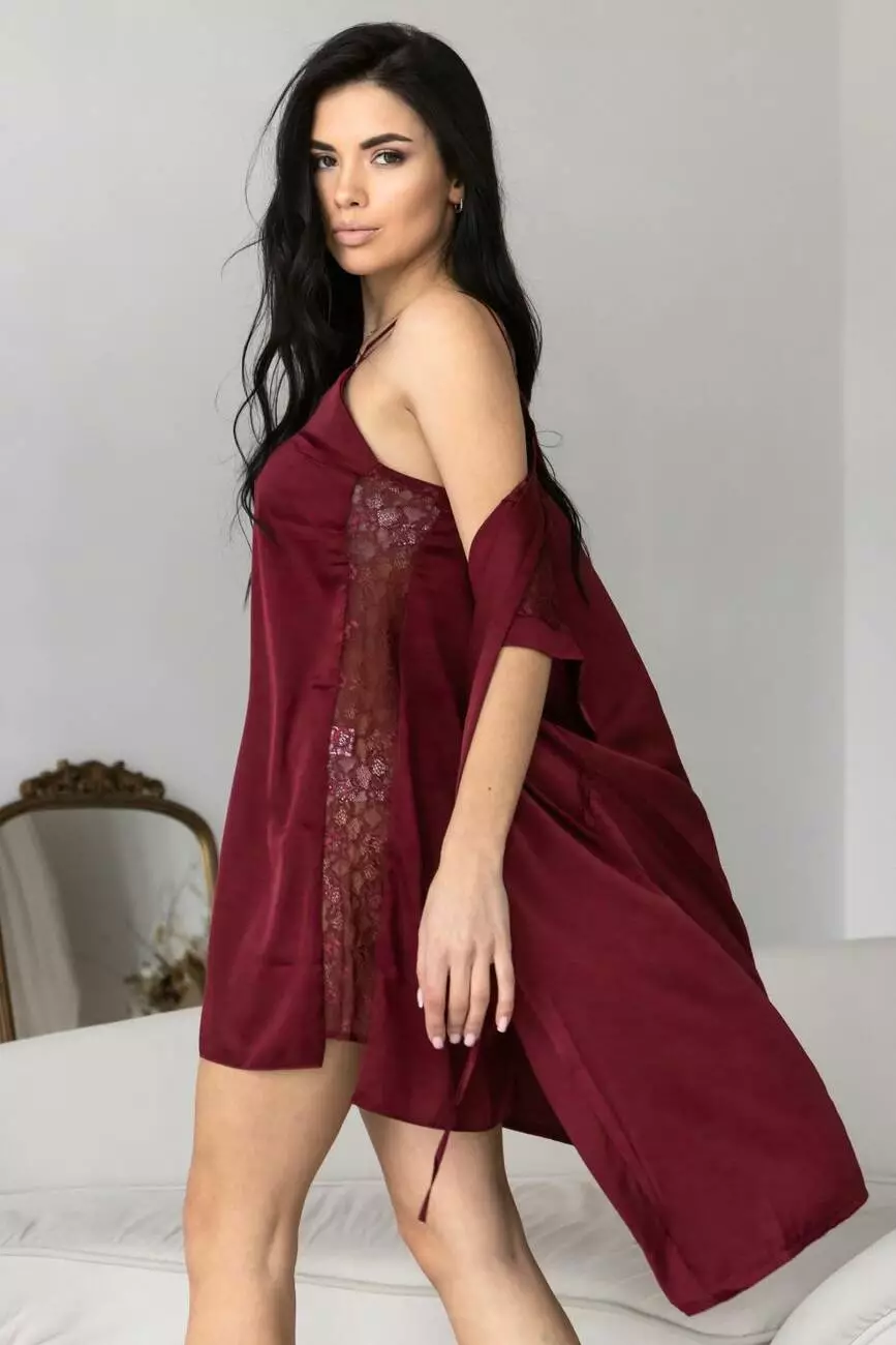 Класичний шовковий комплект для сну Кб1015н в бордовому