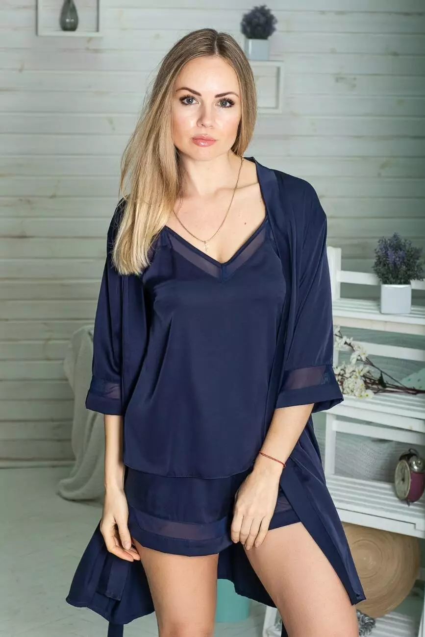 Складається з піжами та халата середньої довжини.