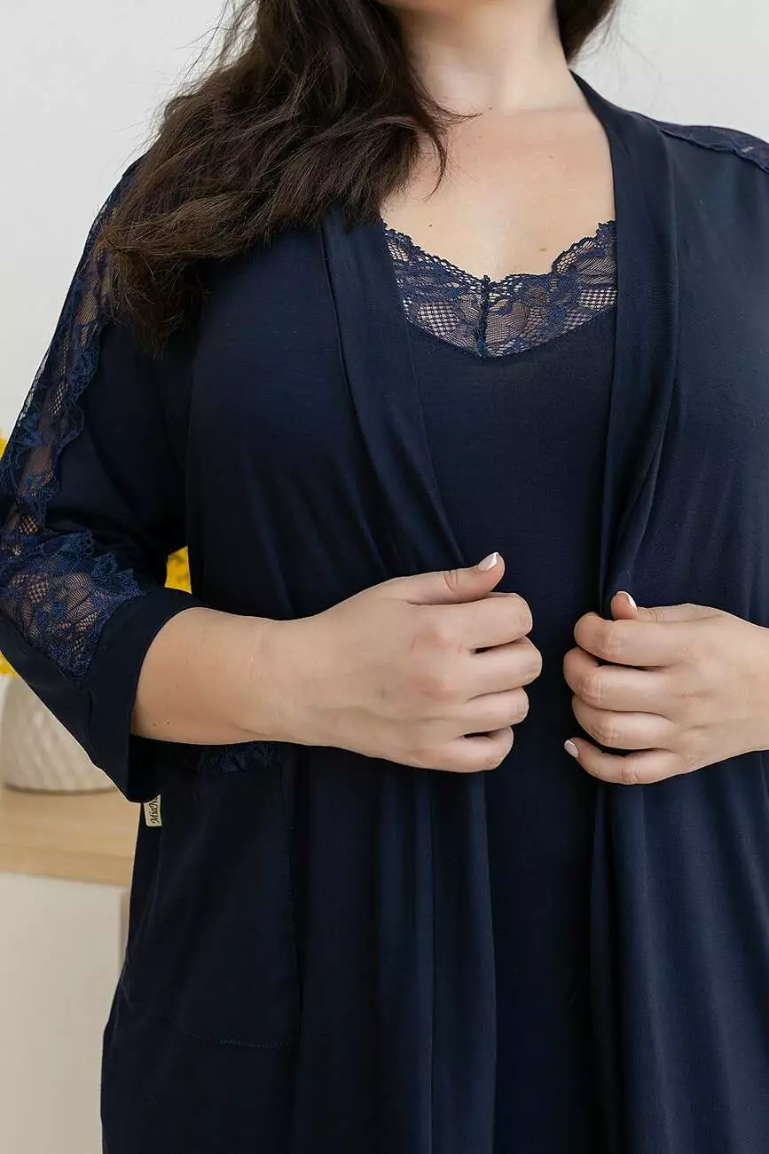 Нічна сорочка комплекту має тонкі бретельки, що регулюються.